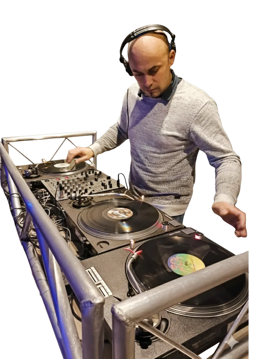Durante una temporada me aparté de las cabinas. Pero mi pasión por la música me volvió a llevar a este fascinante mundo del djing y he llevado esa experiencia a bodas y eventos privados.